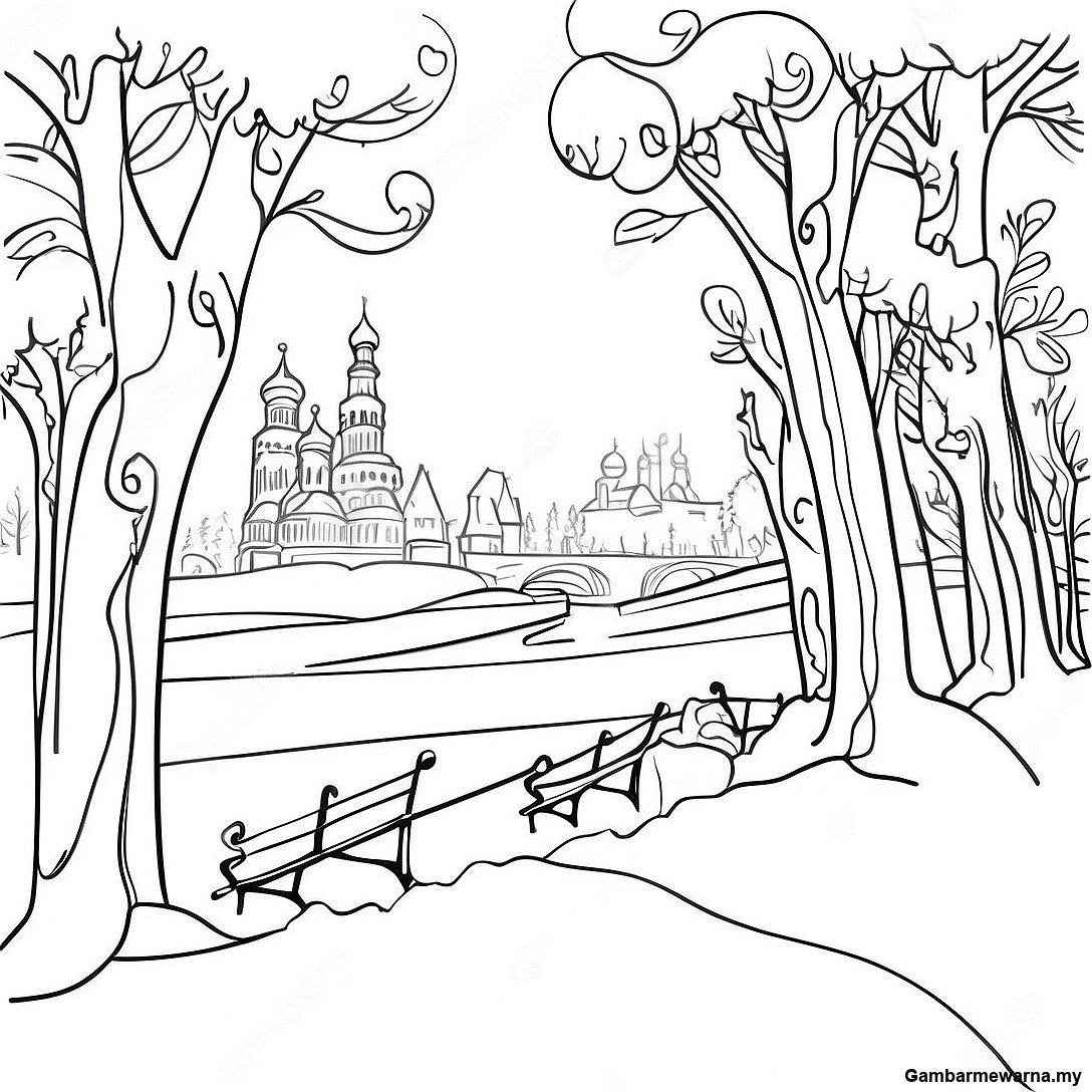 Halaman Mewarna Pemandangan Musim Sejuk Rusia