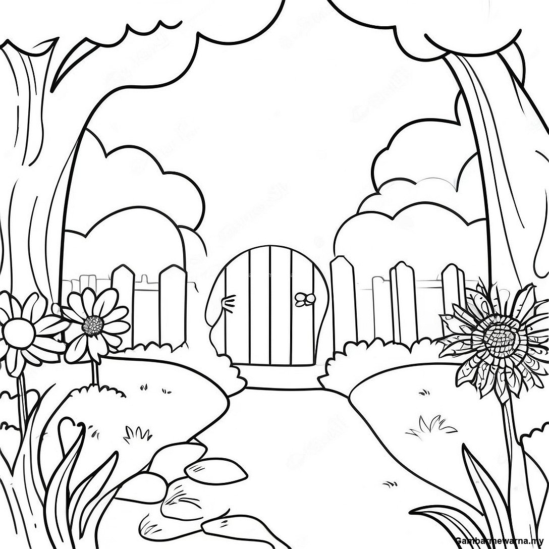 Muat turun PDF Boleh Cetak Halaman Mewarna Pemandangan Taman Damai