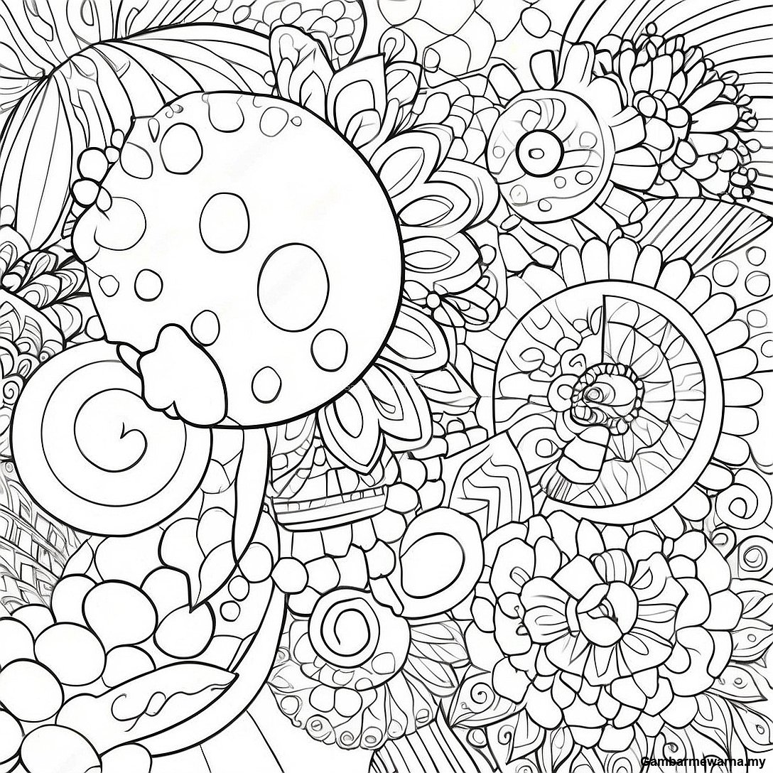 Gambar Mewarna Taman Musim Bunga yang Ceria