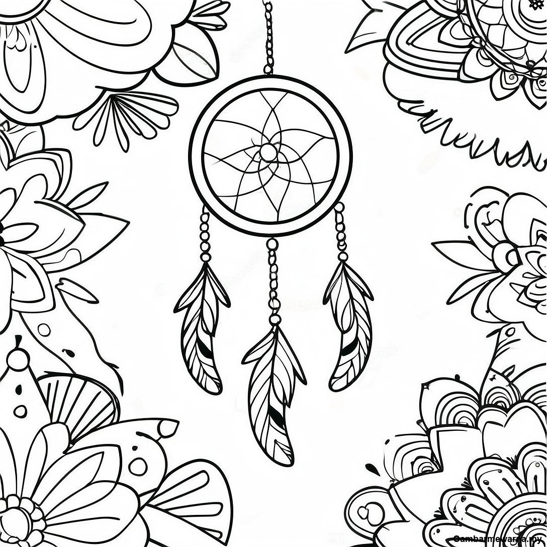 Halaman Mewarna Penangkap Mimpi Ringkas Dengan Bintang