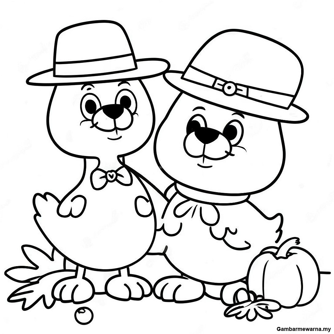 Halaman Mewarna Pengembaraan Bluey Dan Bingo Untuk Hari Kesyukuran