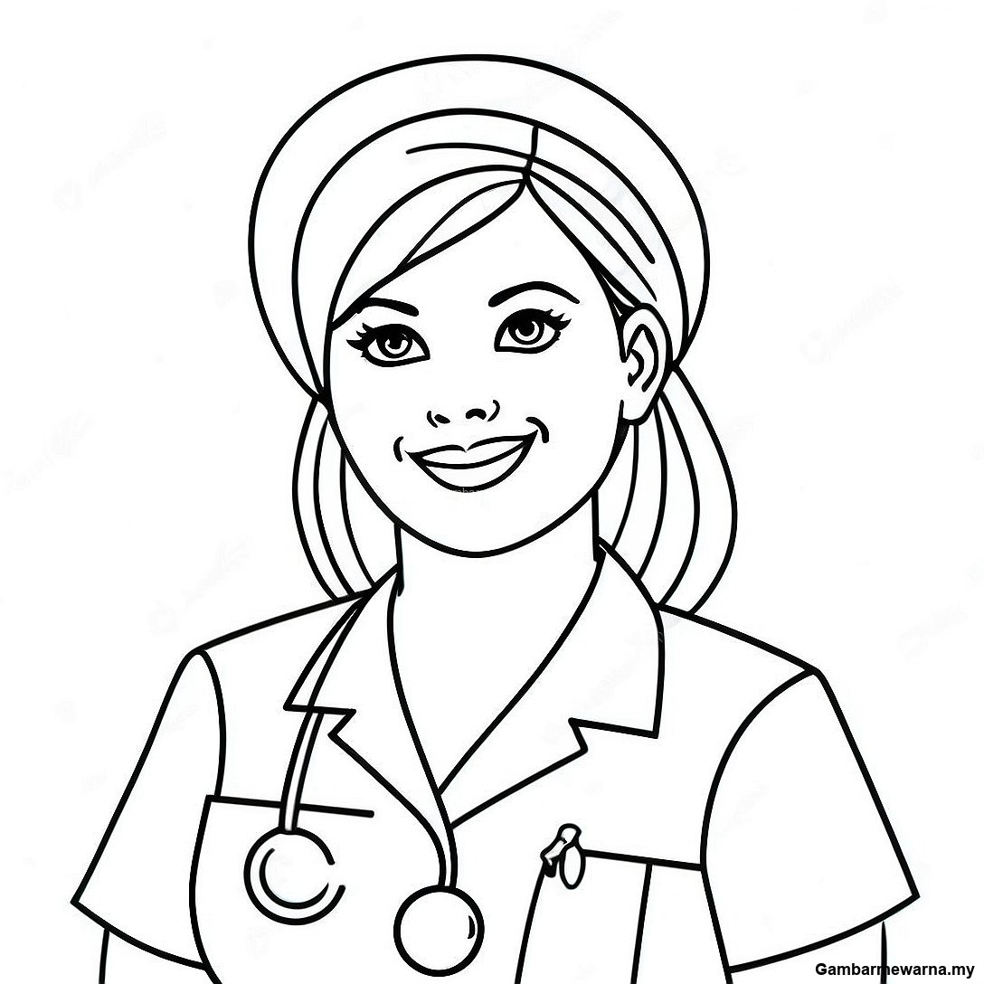 Halaman Mewarna Jururawat Ceria Membantu Pesakit