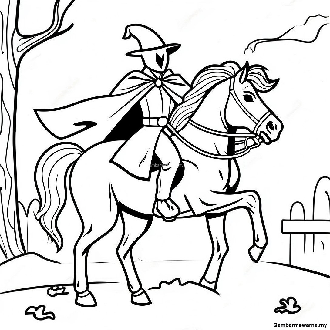Halaman Mewarna Penunggang Tanpa Kepala Menyeramkan