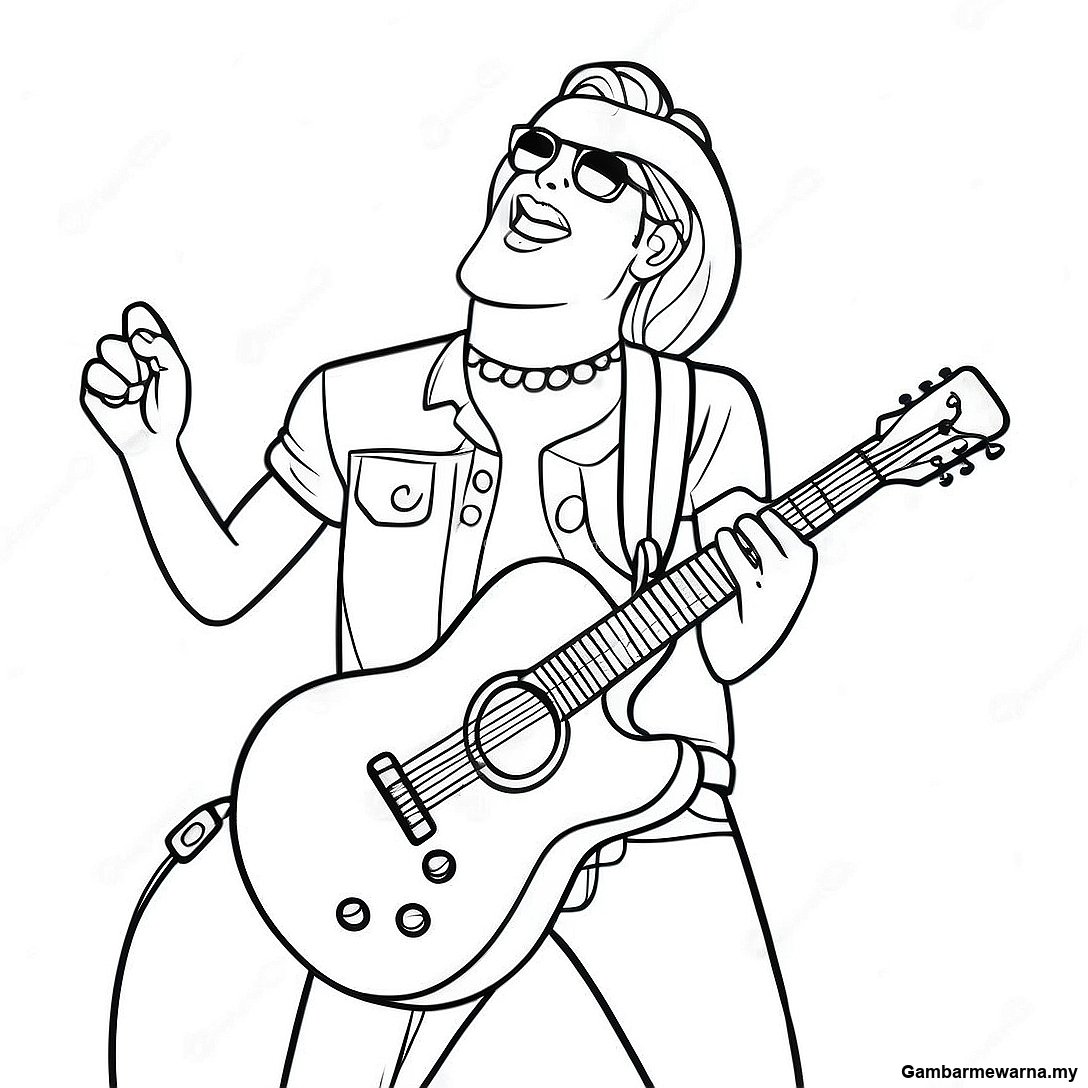 Halaman Mewarna Penyanyi Rock Yang Memainkan Gitar