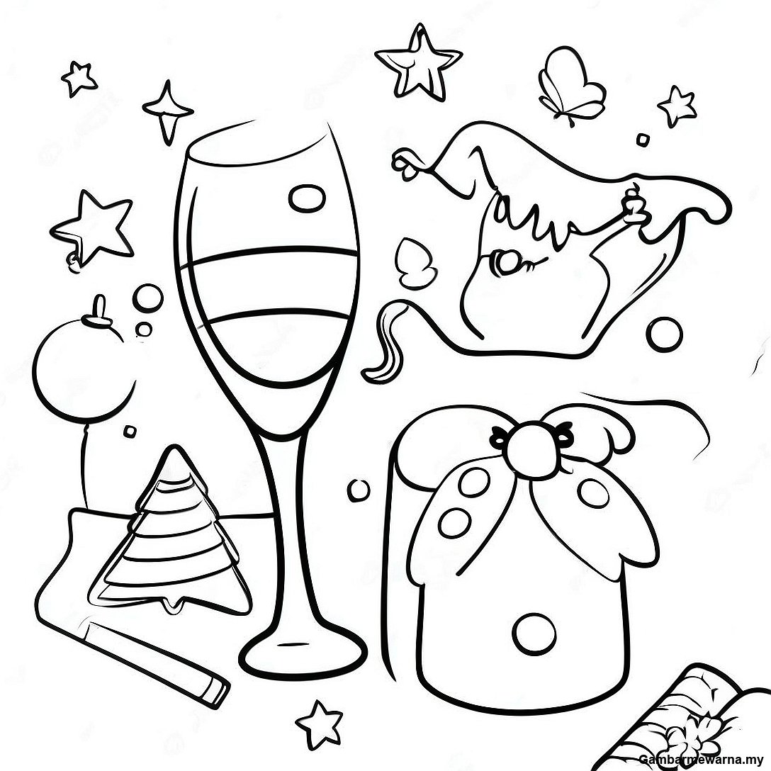 Muat turun PDF Boleh Cetak Halaman Mewarna Perayaan Tahun Baru Yang Meriah Januari