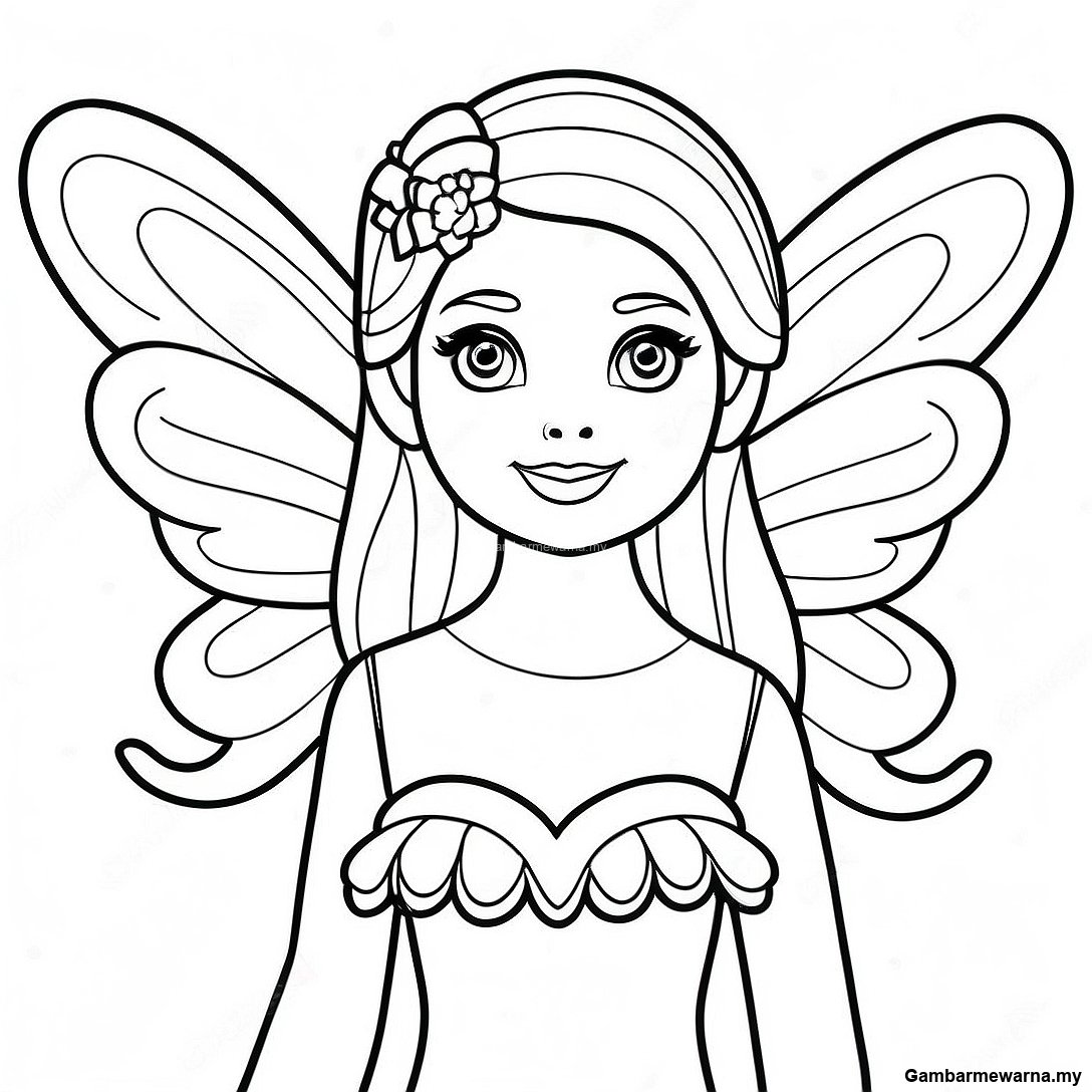 Muat turun PDF Boleh Cetak Halaman Mewarna Peri Barbie Dengan Sayap Berwarna-Warni