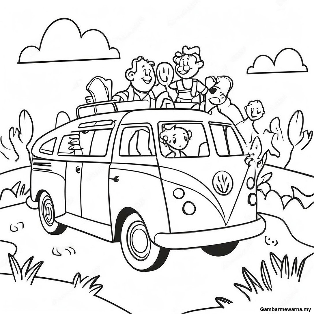 Halaman Mewarna Perjalanan Jalan Raya Keluarga Yang Menyeronokkan