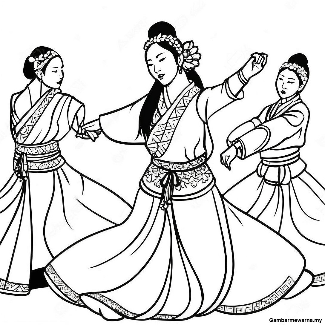 Halaman Mewarna Persembahan Tarian Budaya Aapi