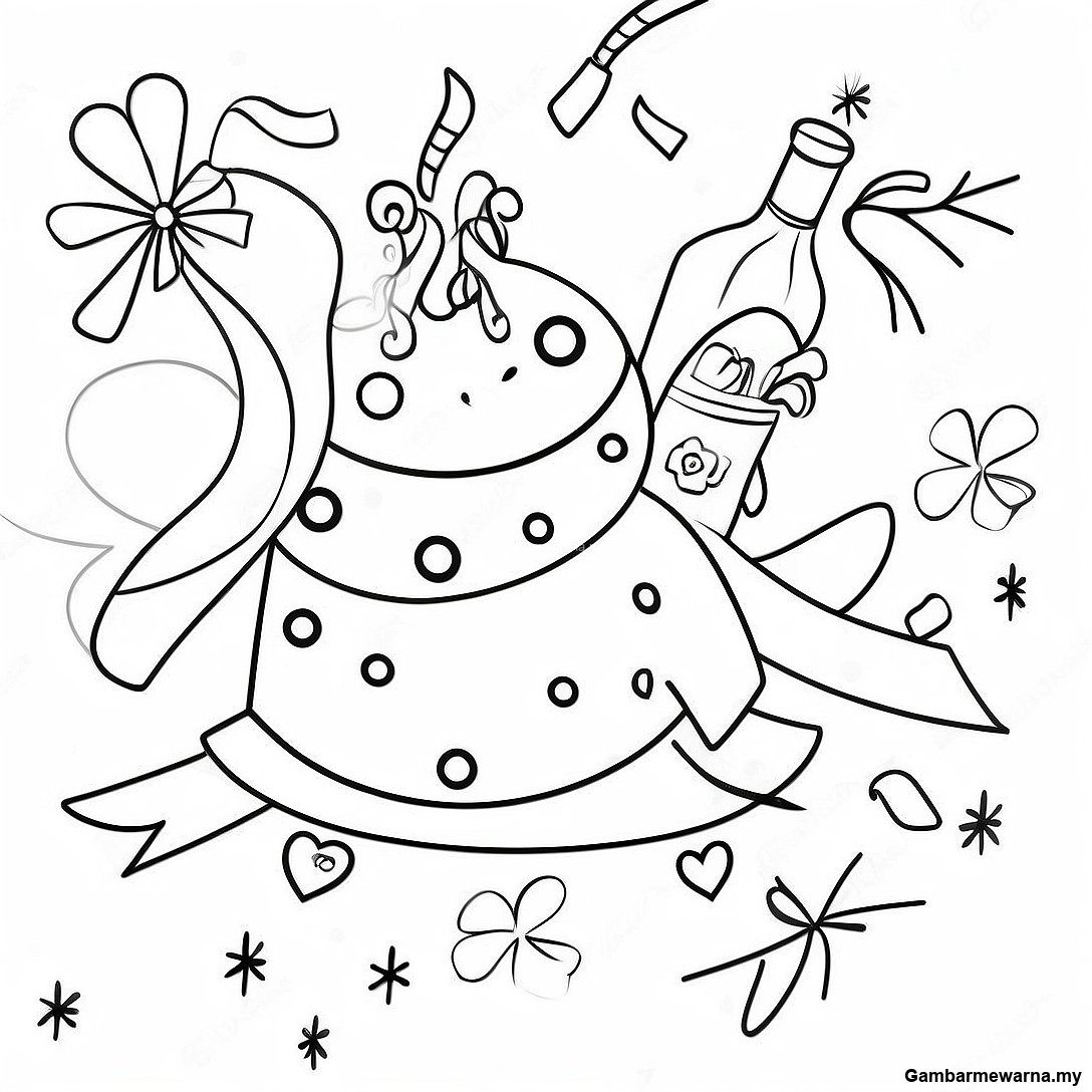 Halaman Mewarna Pesta Tahun Baru Yang Meriah