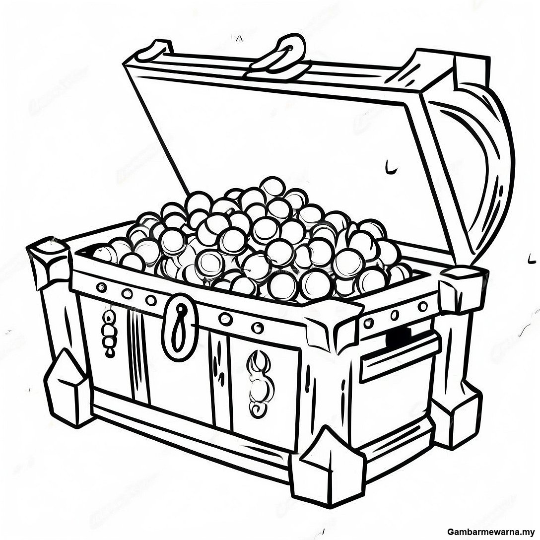 Halaman Mewarna Peti Harta Karun Dengan Permata 127143 60718