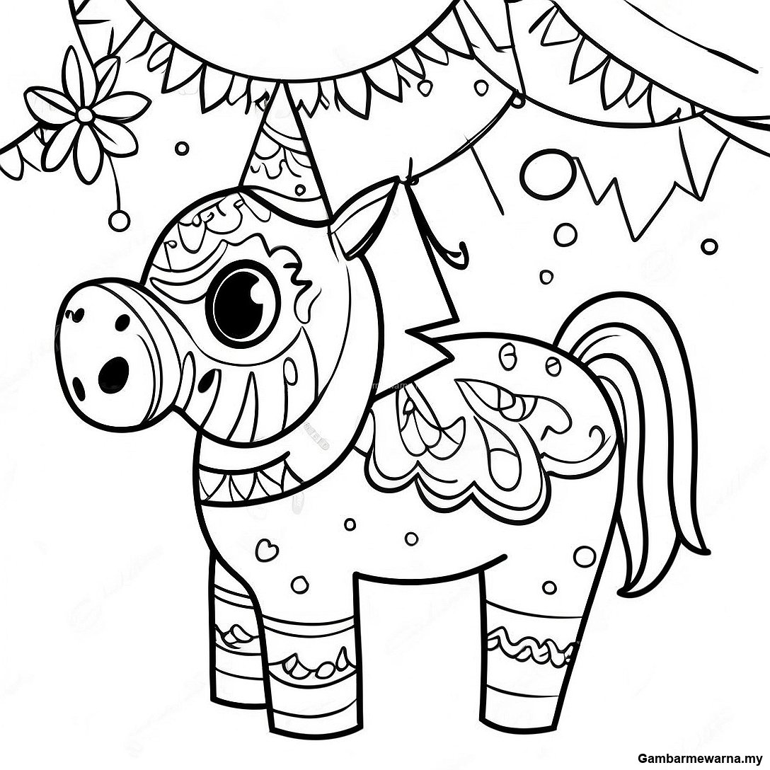 Muat turun PDF Boleh Cetak Halaman Mewarna Piñata Perayaan