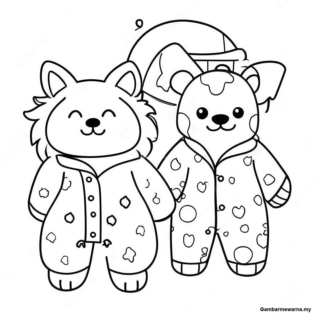 Halaman Mewarna Piyama Haiwan Yang Comel