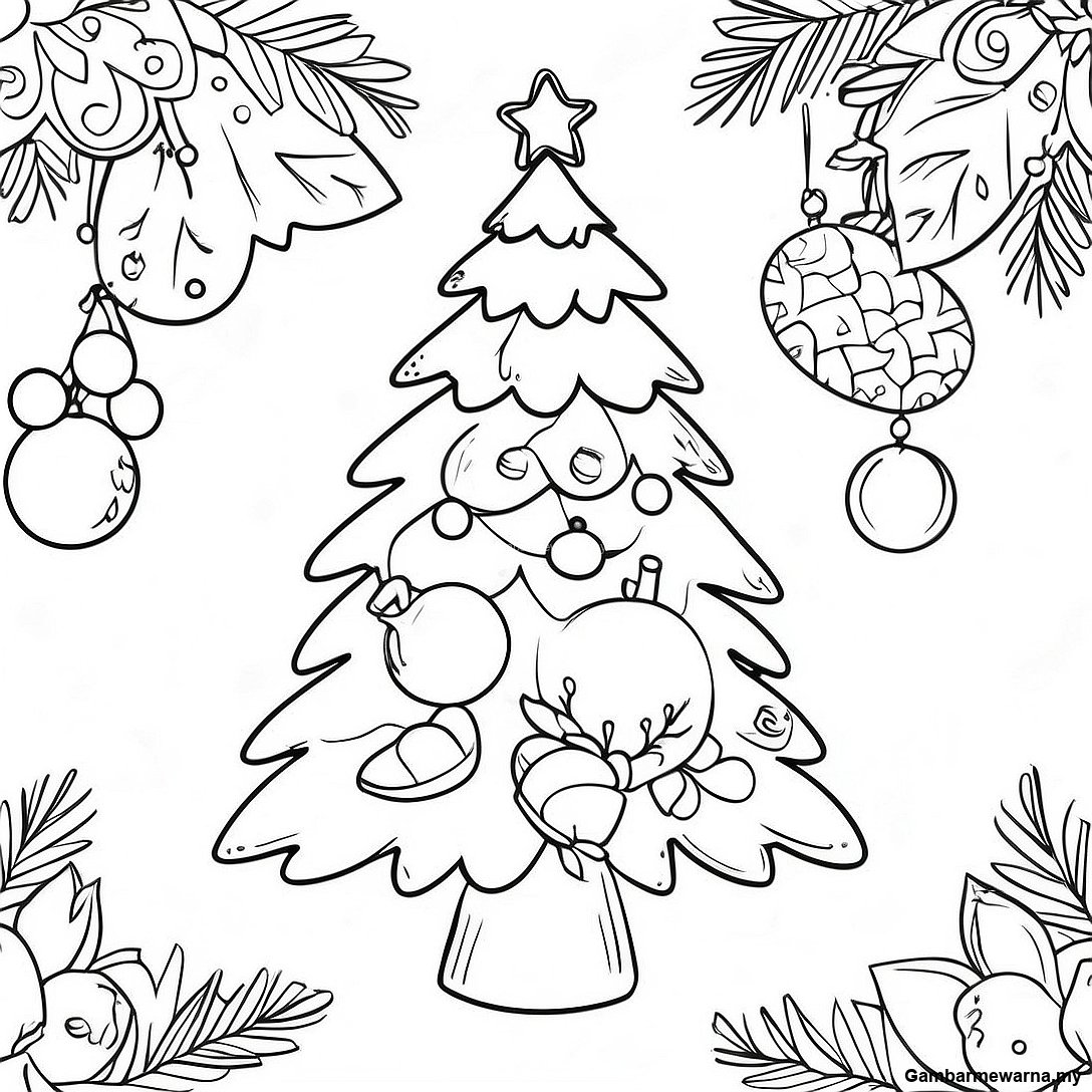 Halaman Mewarna Pokok Krismas Dengan Hiasan 120402 55160
