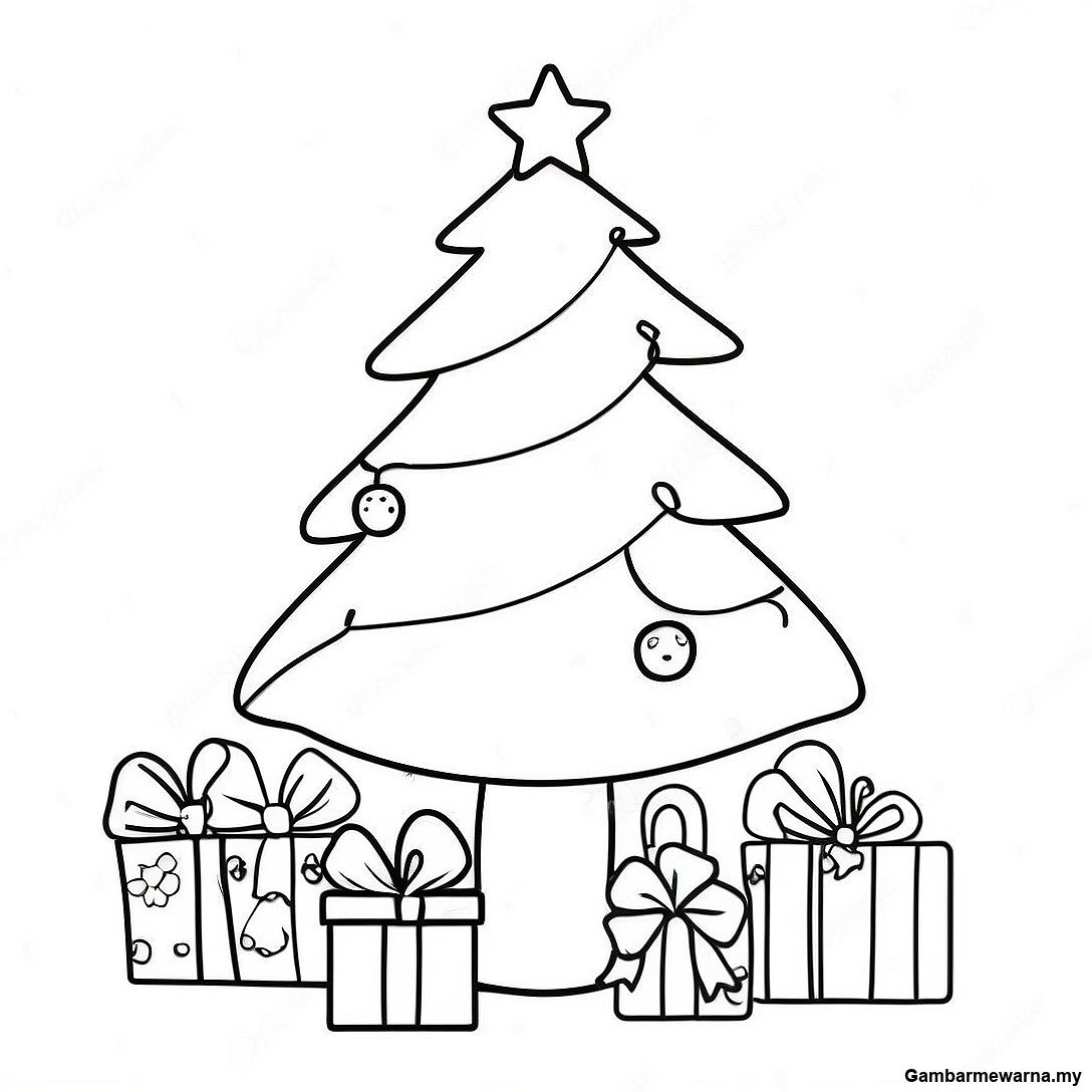 Halaman Mewarna Pokok Krismas Yang Comel Dan Mudah