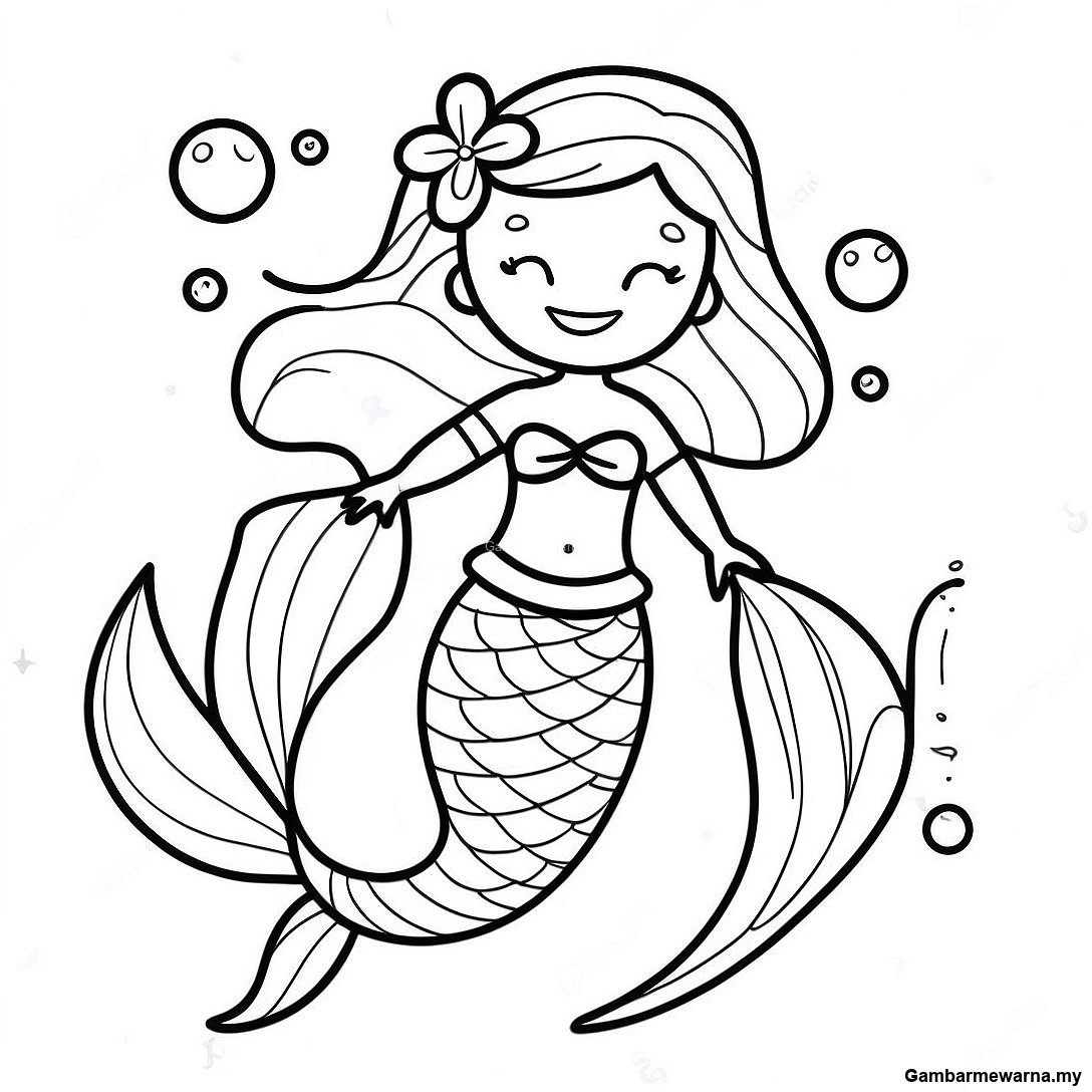 Halaman Mewarna Puteri Duyung Hitam Yang Anggun Di Bawah Laut