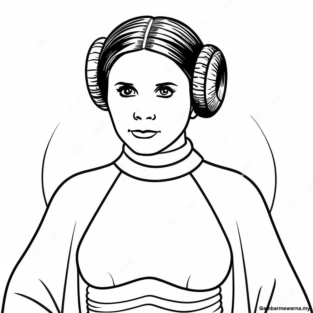 Halaman Mewarna Puteri Leia Dalam Pakaian Ikonik