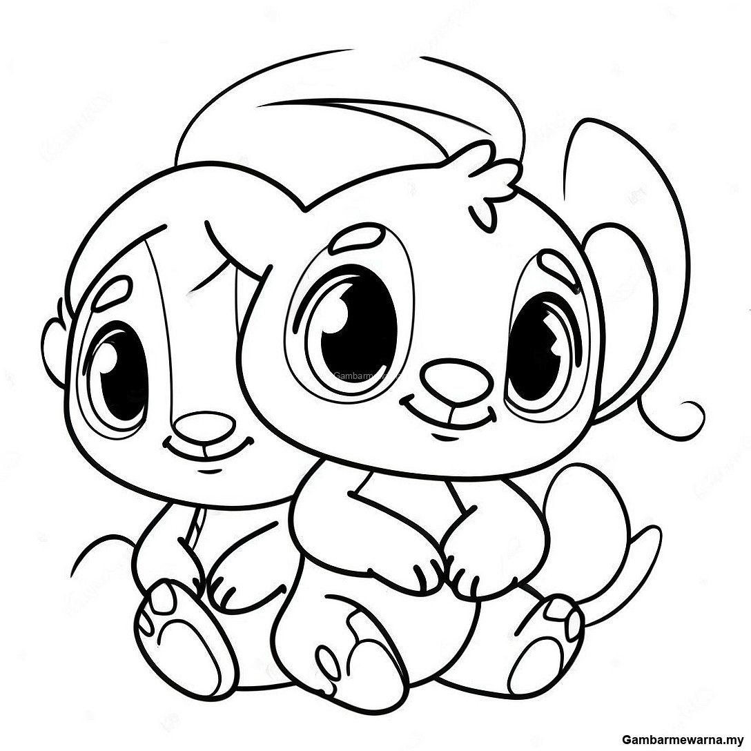 Halaman Mewarna Rakan Stitch Dan Angel Yang Menawan