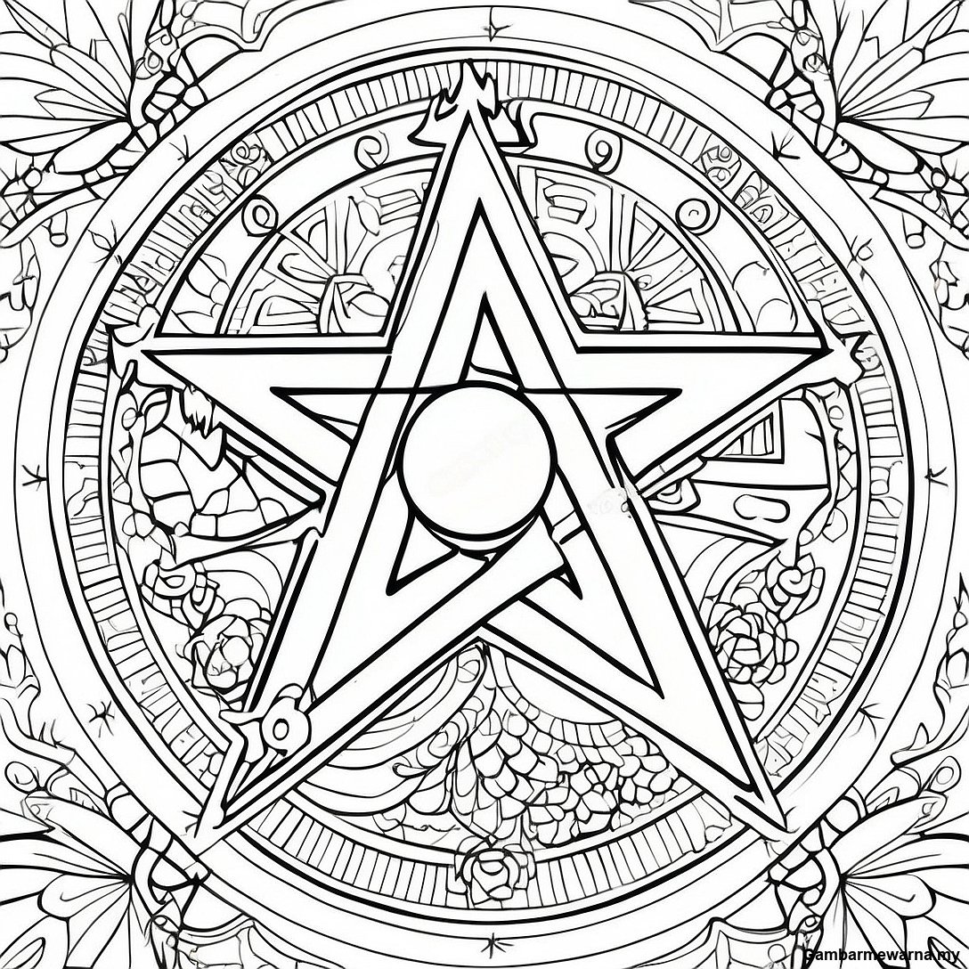Halaman Mewarna Reka Bentuk Pentacle Yang Rumit