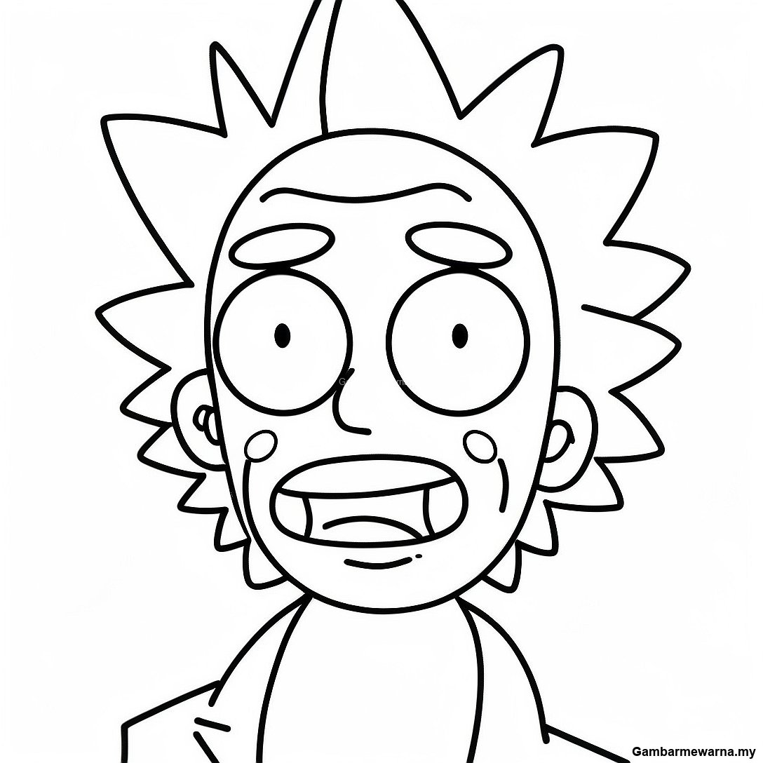 Halaman Mewarna Rick Sanchez Dengan Ekspresi Gila