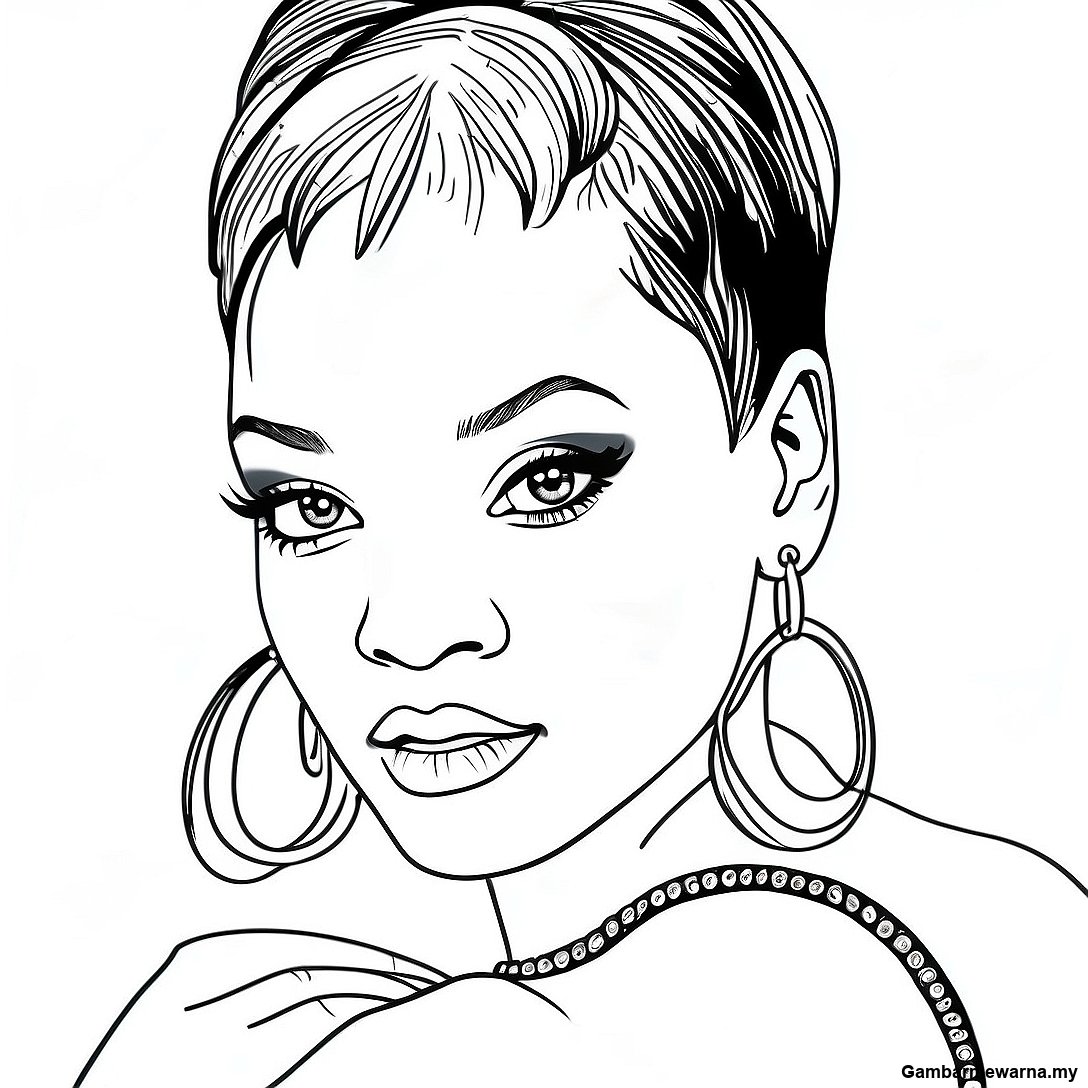 Muat turun PDF Boleh Cetak Halaman Mewarna Rihanna
