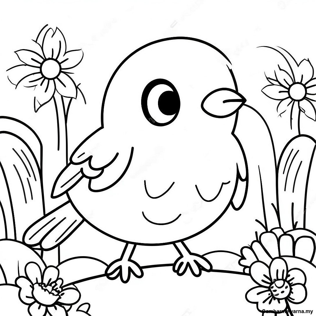 Muat turun PDF Boleh Cetak Halaman Mewarna Robin Gembira Di Musim Bunga