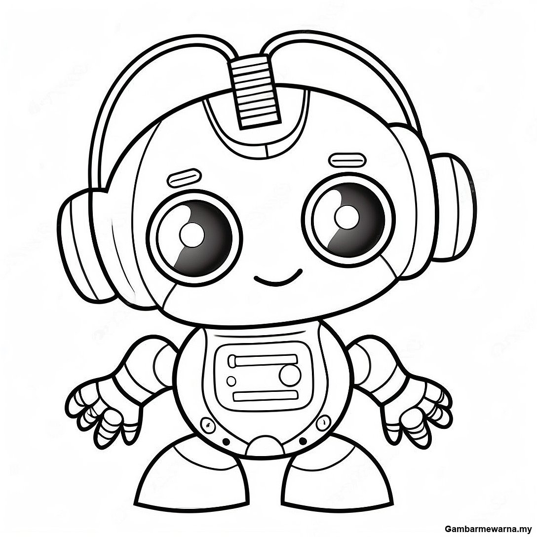 Muat turun PDF Boleh Cetak Halaman Mewarna Robot Comel