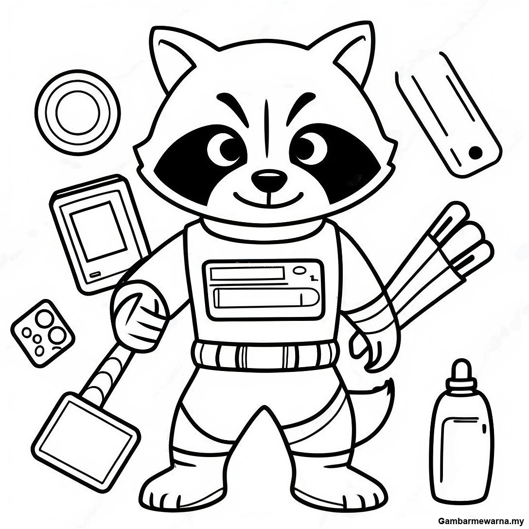 Halaman Mewarna Rocket Raccoon Dengan Alat