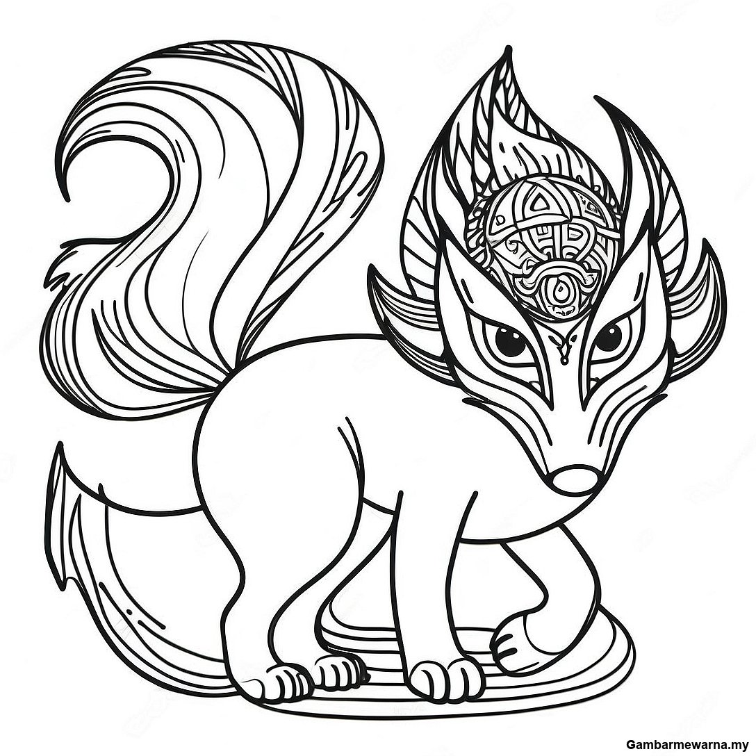 Halaman Mewarna Rubah Ekor Sembilan Mistik
