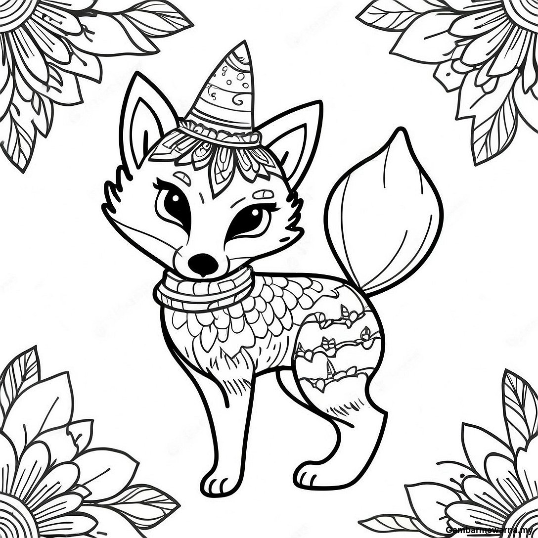 Halaman Mewarna Rubah Megah Dengan Bunga 6741 2373