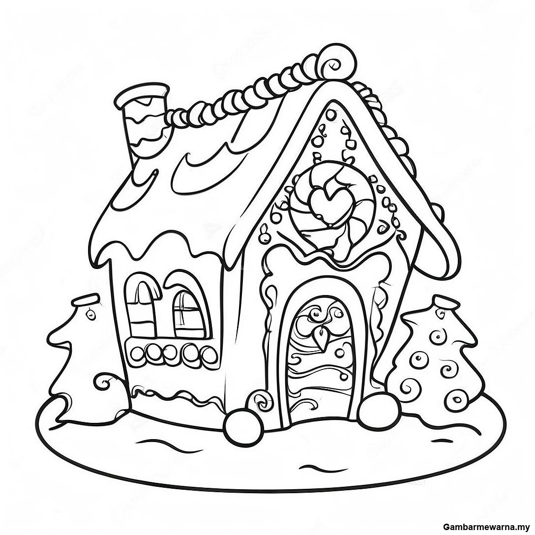 Muat turun PDF Boleh Cetak Halaman Mewarna Rumah Hiasan Jahe Meriah