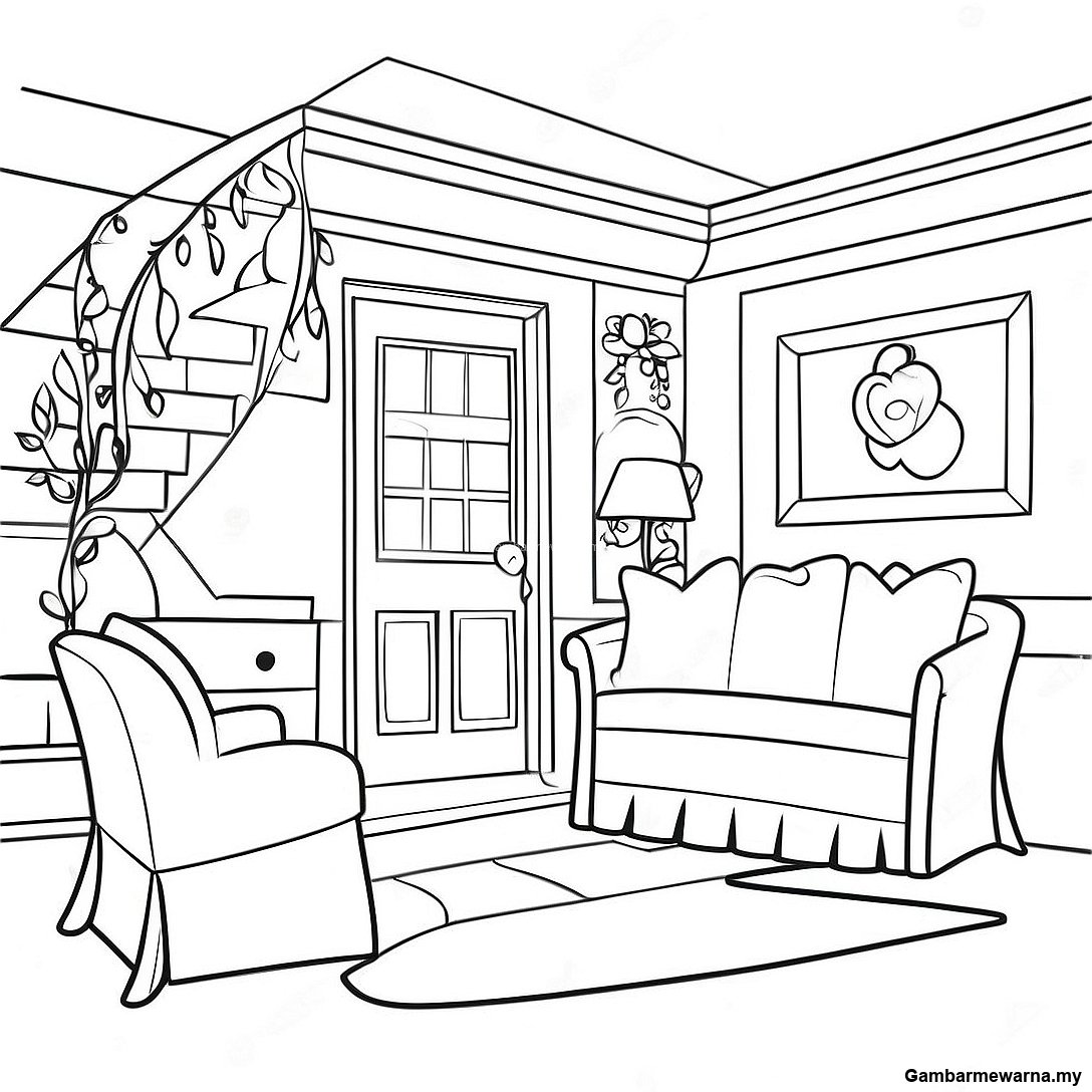 Halaman Mewarna Rumah Impian Barbie Dengan Kawan Kawan
