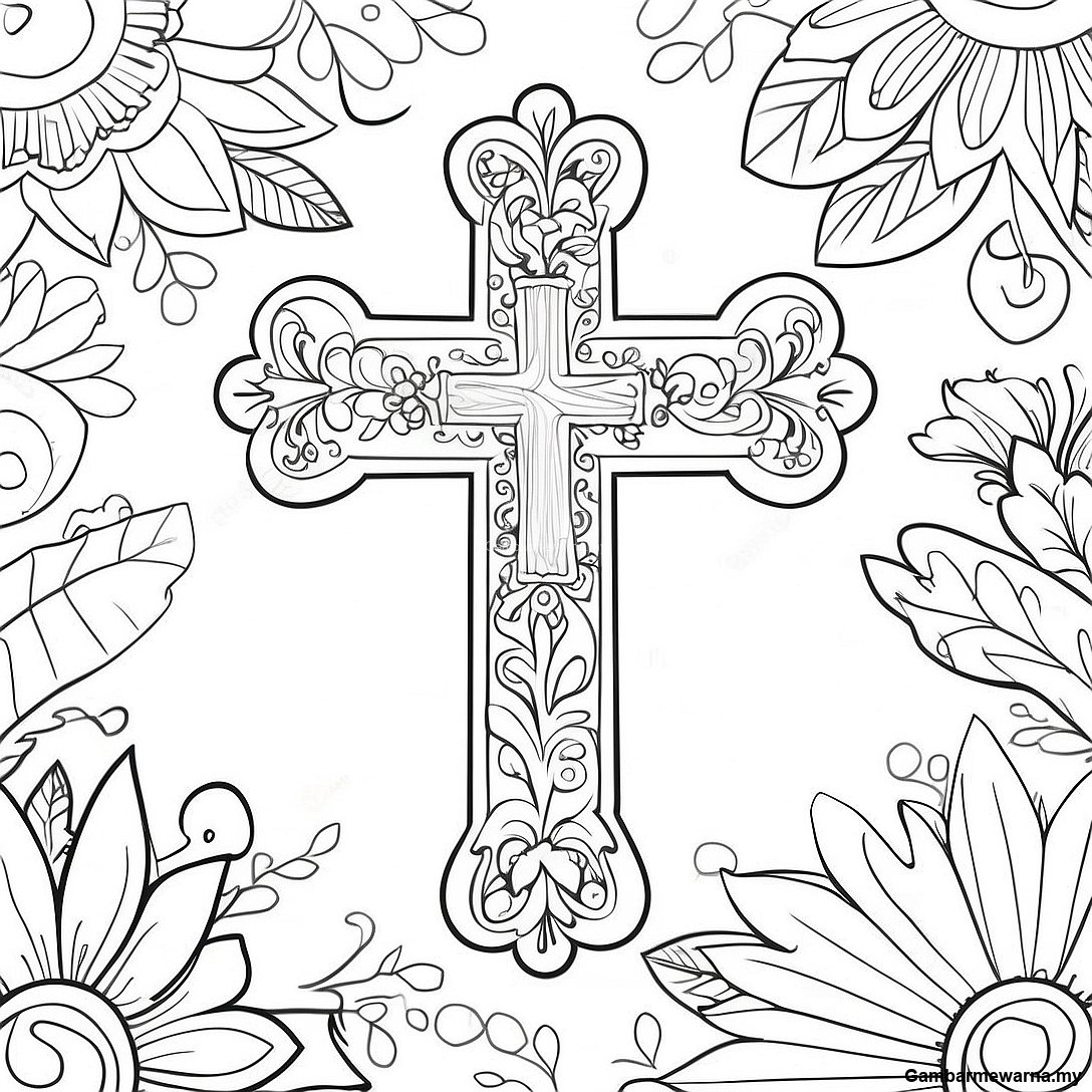 Halaman Mewarna Salib Berwarna Dengan Bunga