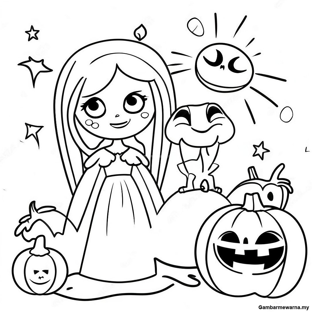 Muat turun PDF Boleh Cetak Halaman Mewarna Sally Dengan Raja Labu