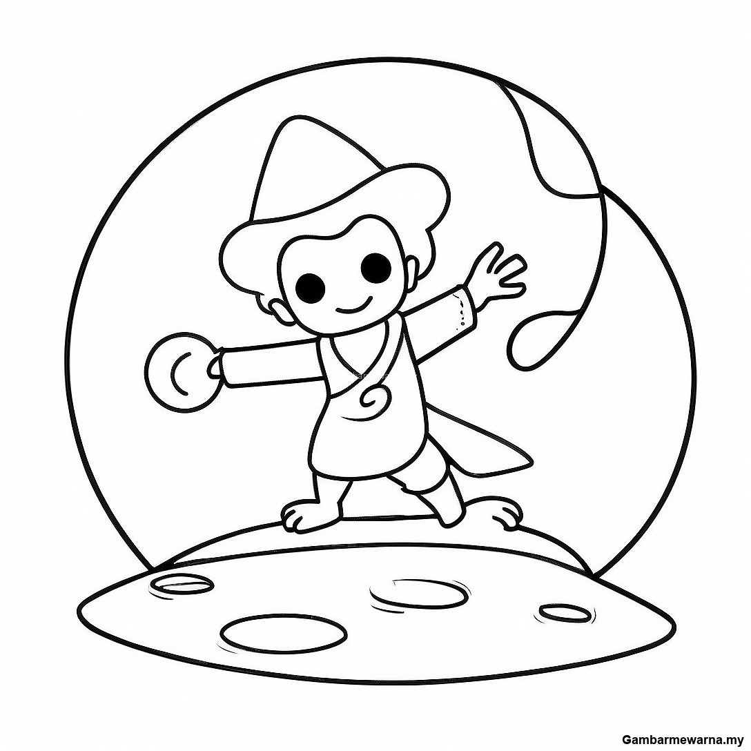 Halaman Mewarna Sandman Ceria Dengan Bulan