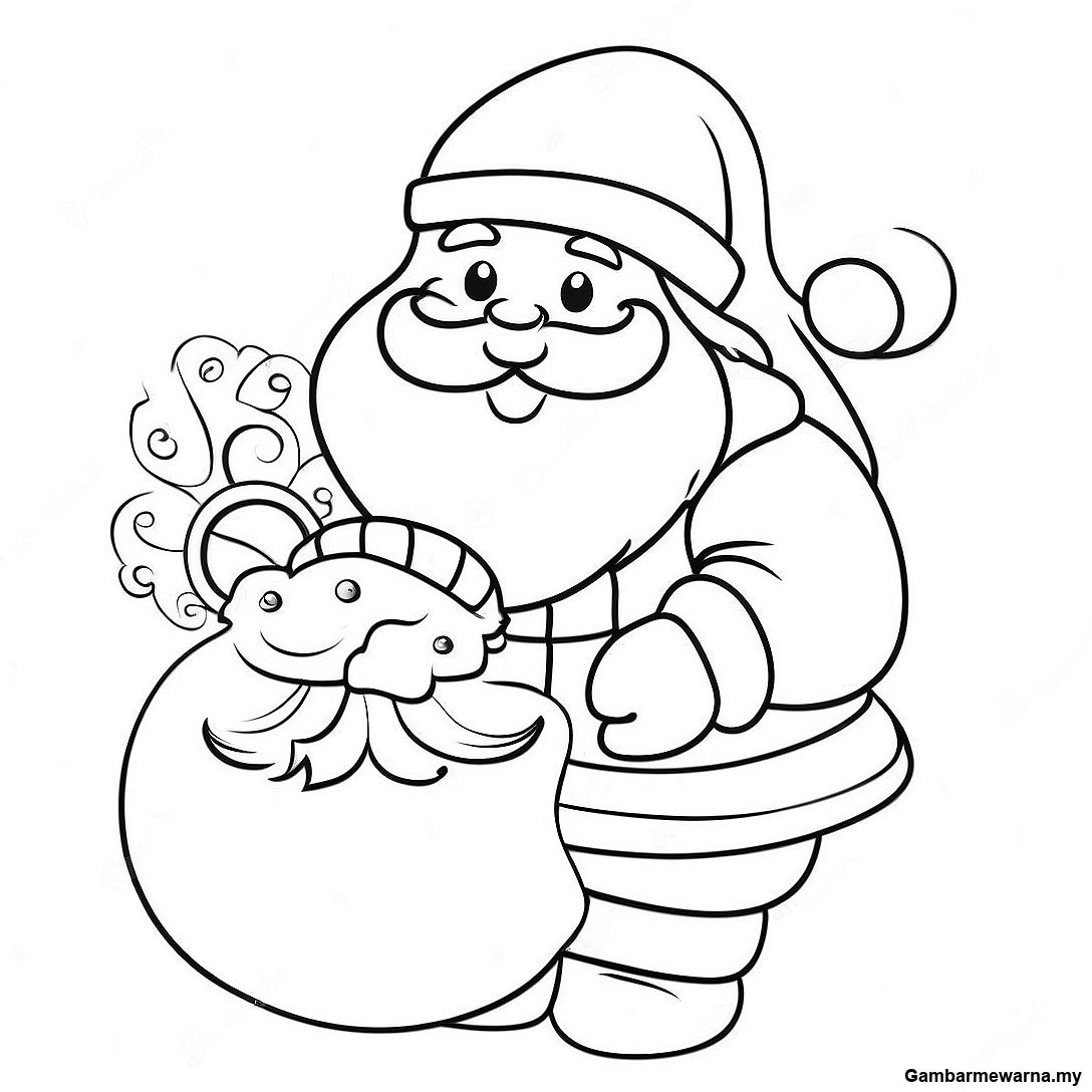 Halaman Mewarna Santa Claus Krismas Yang Manis