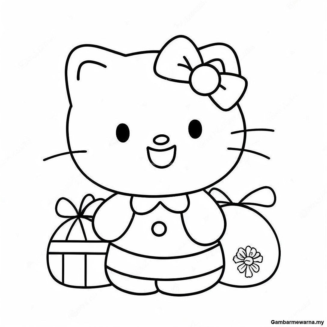 Halaman Mewarna Selamat Hari Krismas Hello Kitty