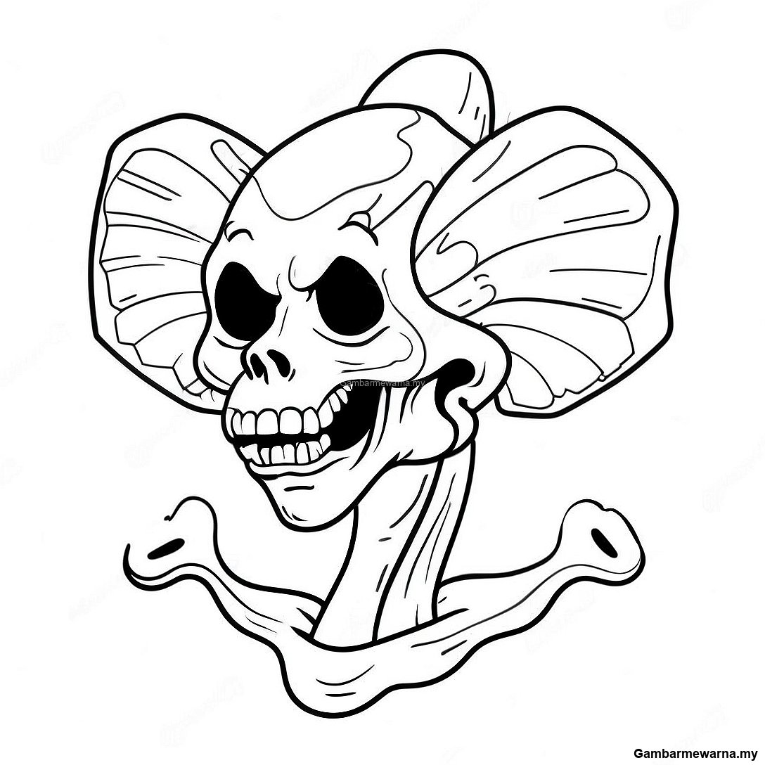 Halaman Mewarna Siluet Kepala Siren Menakutkan