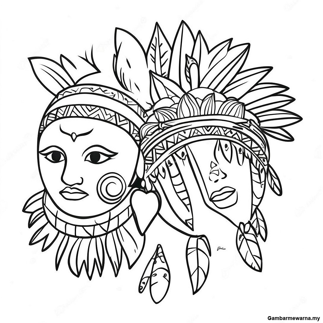 Halaman Mewarna Simbol Hari Orang Asli Budaya