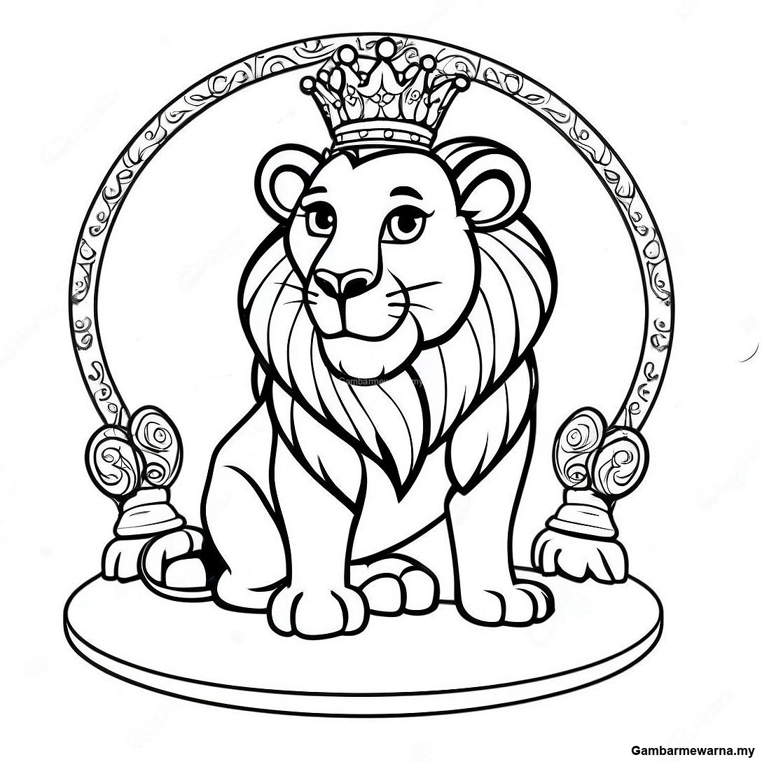 Halaman Mewarna Singa Raja Yang Anggun Di Takhta