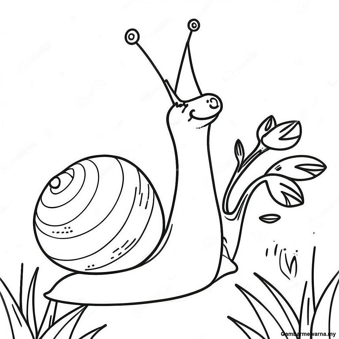 Halaman Mewarna Siput Gembira Dengan Bunga 86980 27599