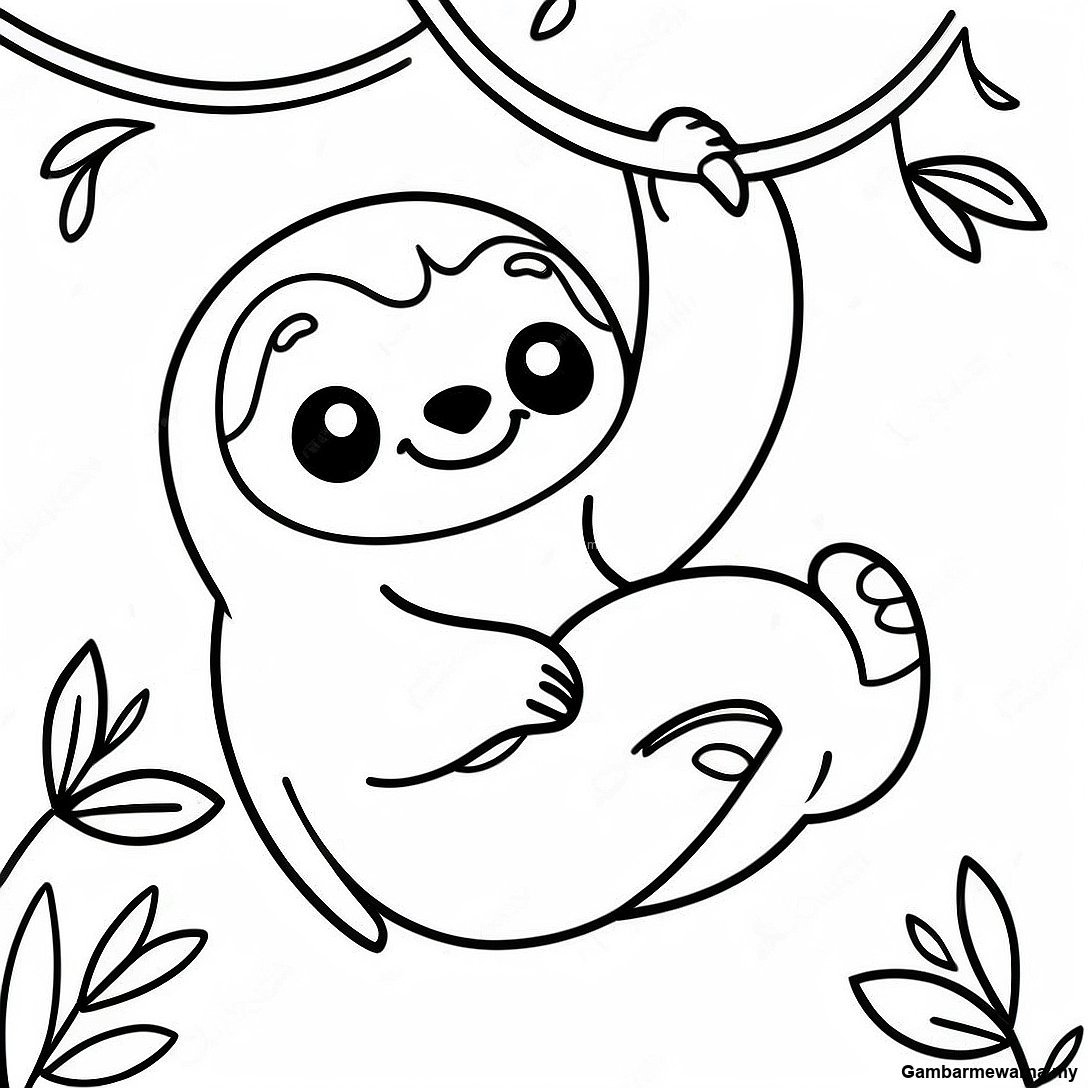 Halaman Mewarna Sloth Comel Bergantung Dari Pokok