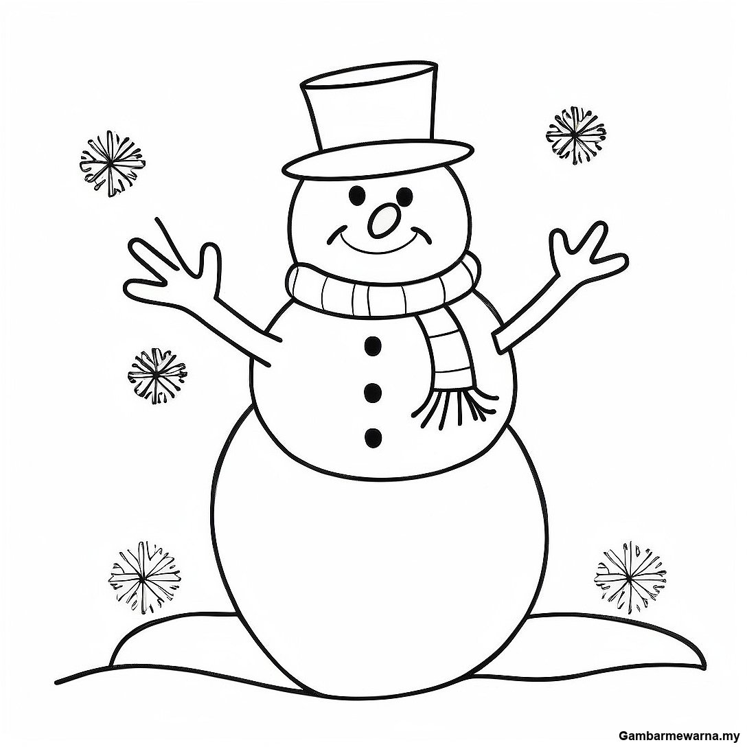 Halaman Mewarna Snowman Gembira dengan Skarf