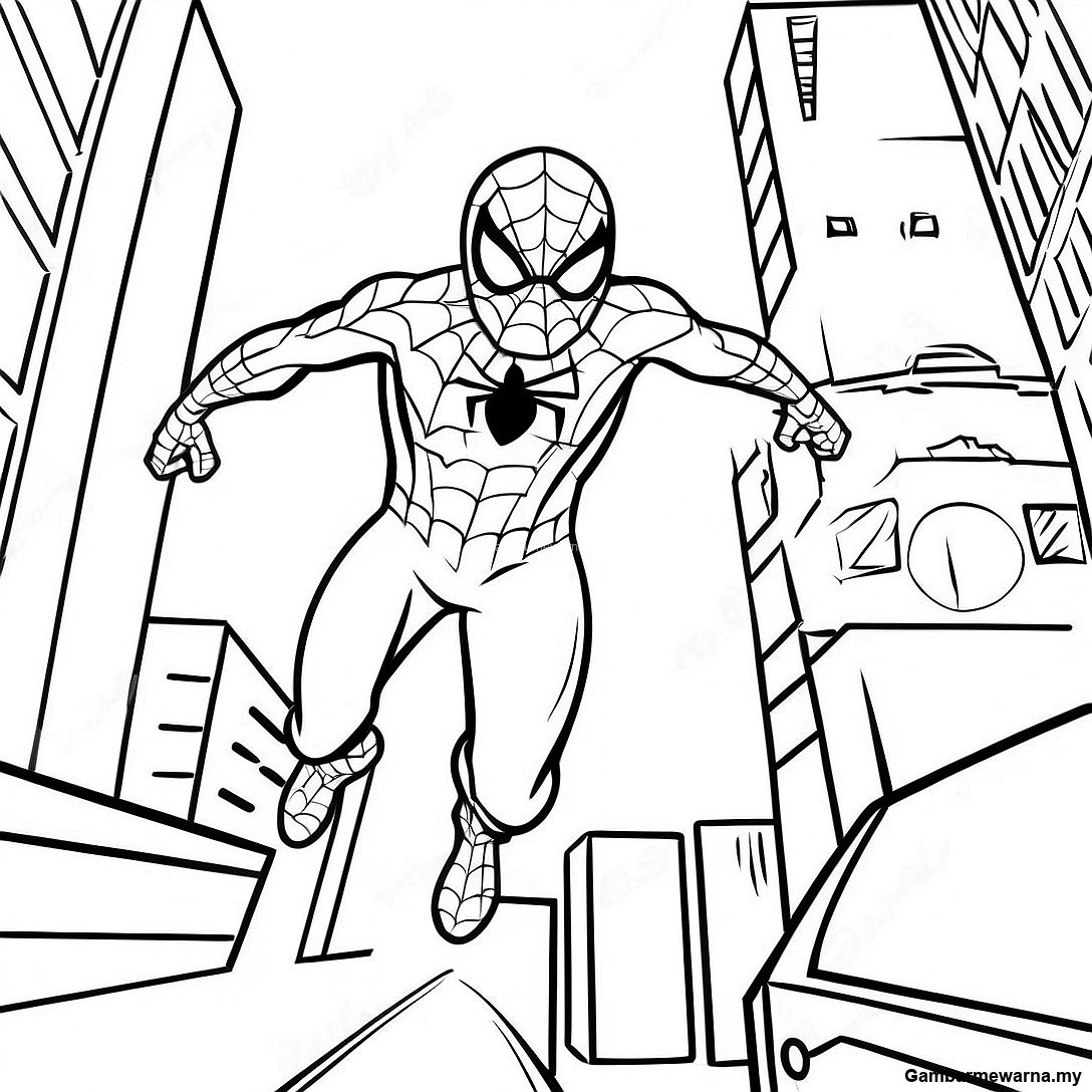 Halaman Mewarna Spider Man Meluncur Melalui Bandar 129763 62874
