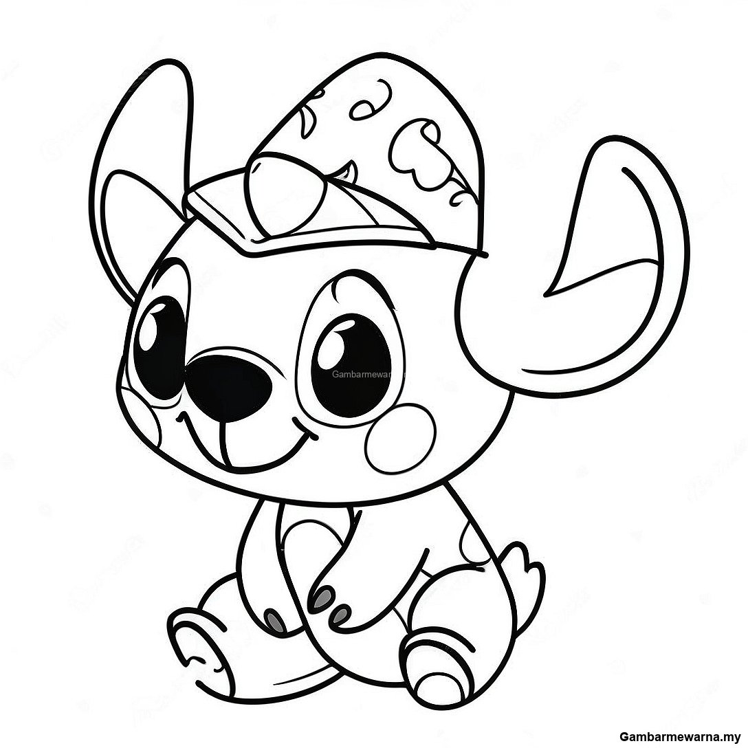 Halaman Mewarna Stitch Comel Dengan Topi Ulang Tahun