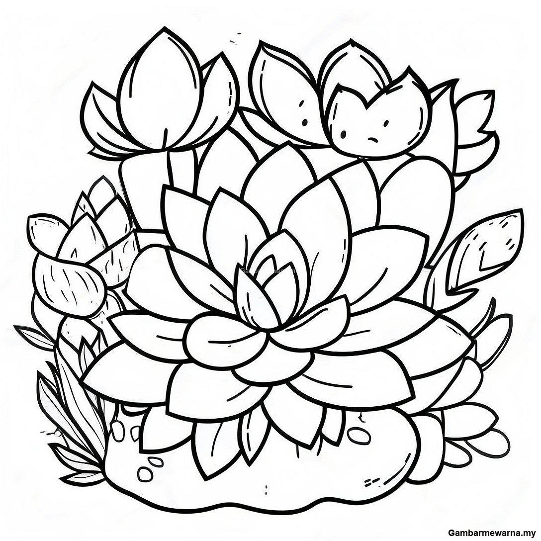 Halaman Mewarna Taman Succulent Berwarna-Warni