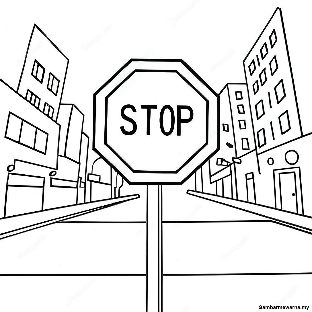 Halaman Mewarna Tanda Berhenti Kartun Di Bandar 87416 27929