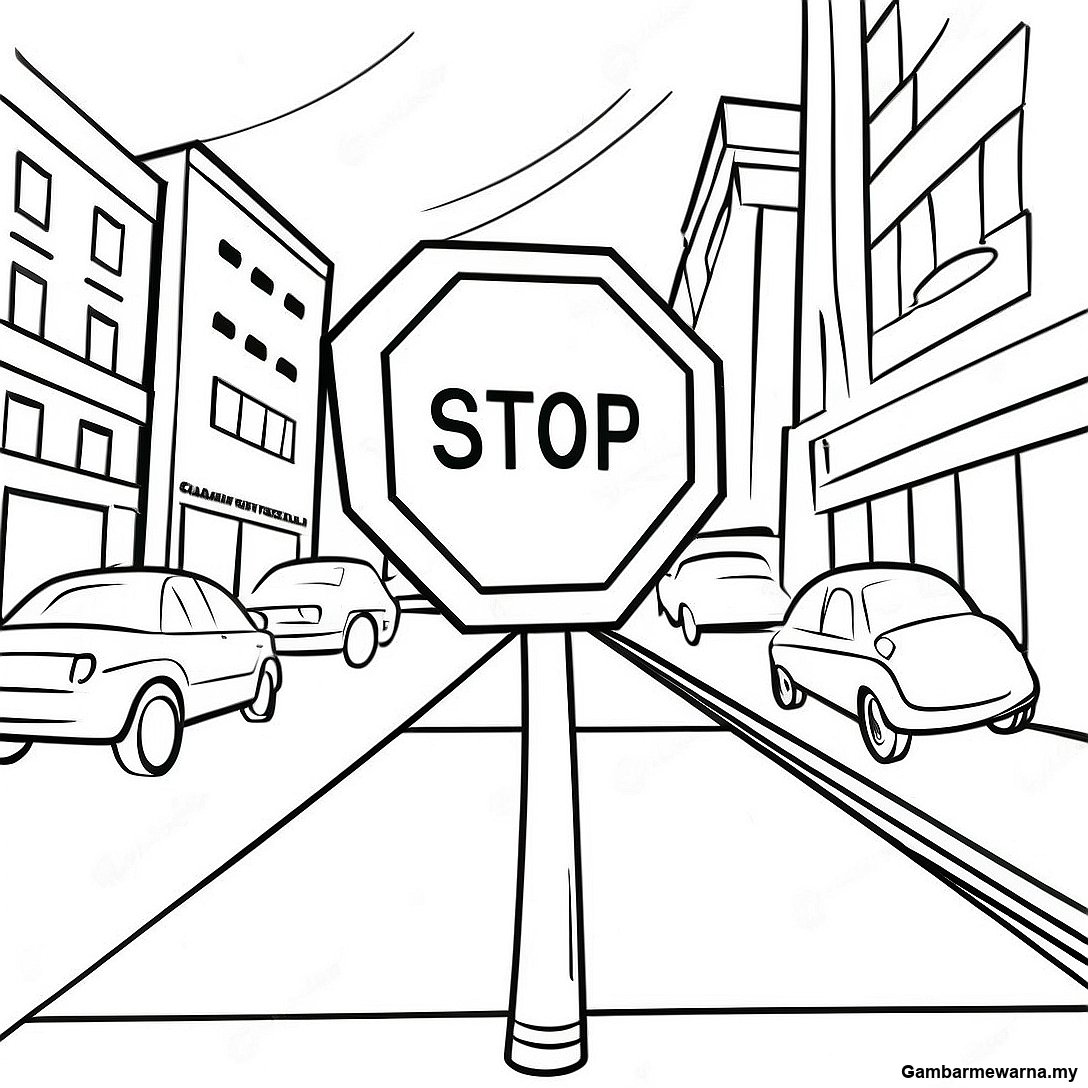 Halaman Mewarna Tanda Berhenti Kartun Di Bandar
