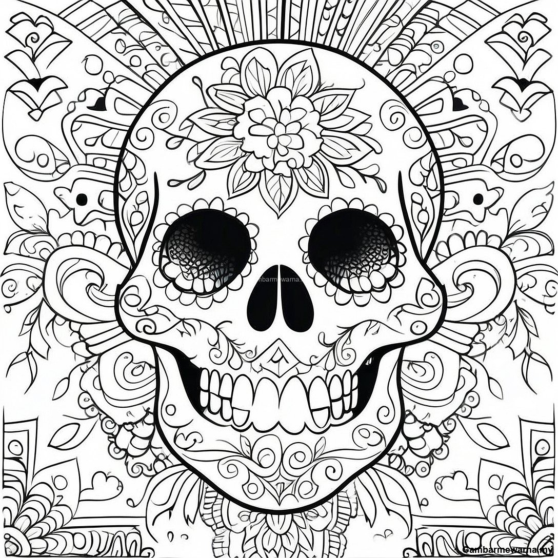 Halaman Mewarna Tengkorak Gula Rumit Dengan Corak