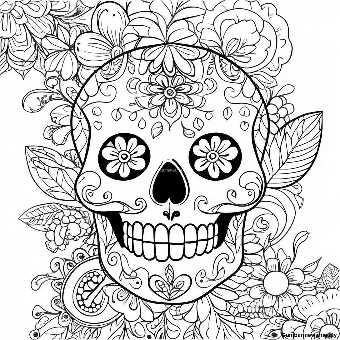 Halaman Mewarna Tengkorak Gula Rumit Dengan Corak 17803 3886
