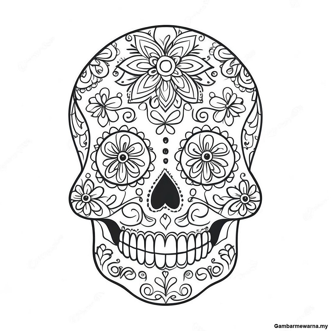 Halaman Mewarna Tengkorak Gula Rumit Dengan Corak 17803 3887